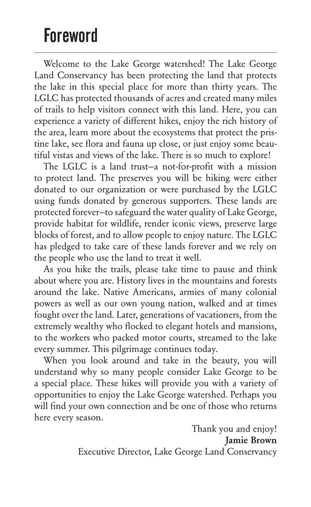 Geared towards promoting hikes that are suitable for beginners, families and others looking for hikes that can be completed in a few hours, "12 Short Hikes on Preserves Near Lake George" is a pocket-sized guide with easy-to-follow directions and information about each destination. It also includes a Forward written by our own Executive Director, Jamie Brown.