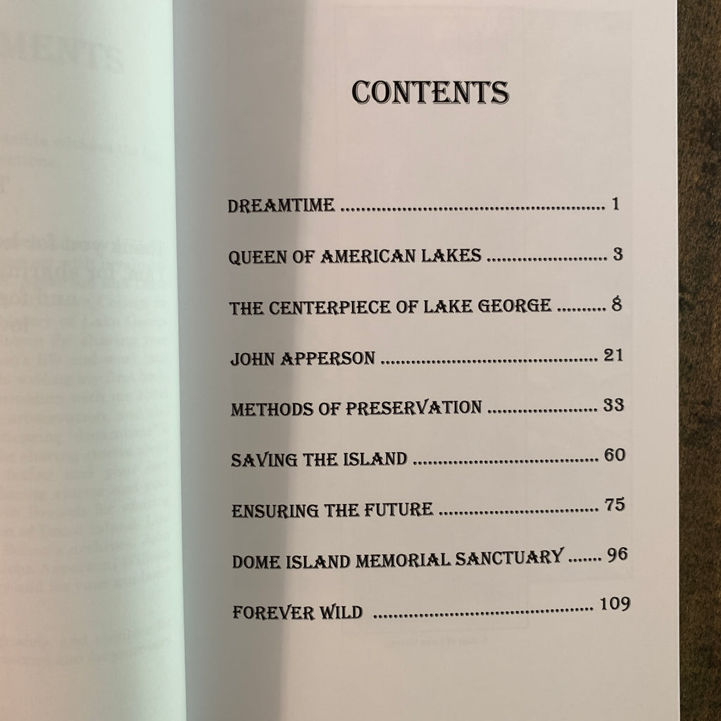 Written by Noah Chirnomas, Dome Island: Forever Wild on Lake George gives a complete look at the history of Dome Island, from its creation by glaciers to its protection by activist and preservationist John Apperson. Chirnomas includes many historic photographs and letters to help tell the Island's story, as one of Lake George's only islands untouched by development or tree clearing.