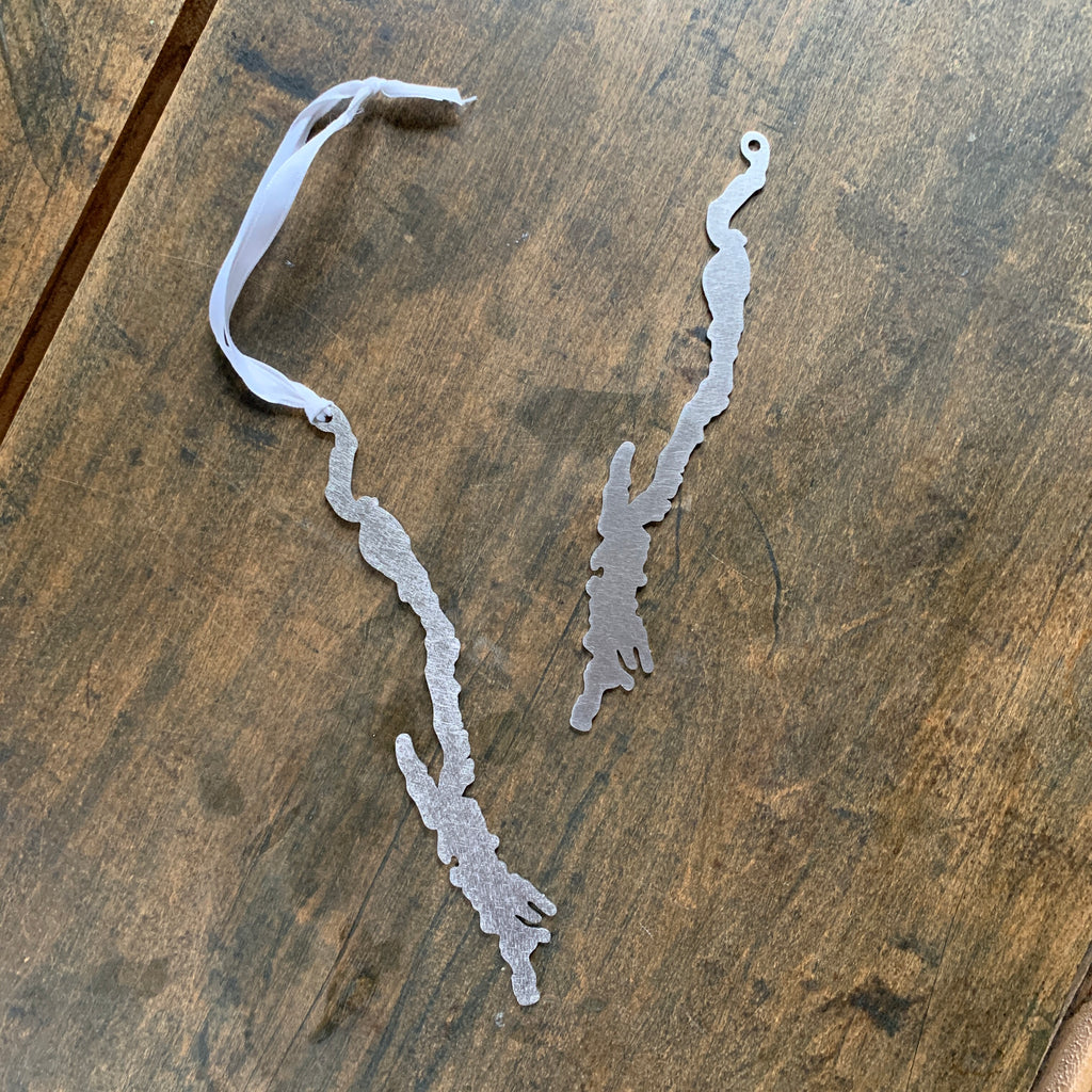 Brighten your holiday tree or hang on your window with this cutout of your favorite lake! Another great stainless steel item made by Hague resident Glenn Brownstein (Staloff Brothers Custom Metal Fabrication) and donated to the LGLC.